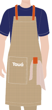 AVENTAL PEITO CAQUI, BOLSO CHAPADO, FAIXA DE TECIDO P/ APOIO PANO, STEWARD, RESTAURANTE, TAUA JP