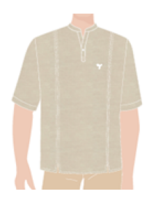 BATA MASCULINA BEGE MESCLA M/C, DET. GOLA PADRE EM V, COM MEIA PATTE, 1 BOTÃO, MENSAGEIRO, TAUA JP