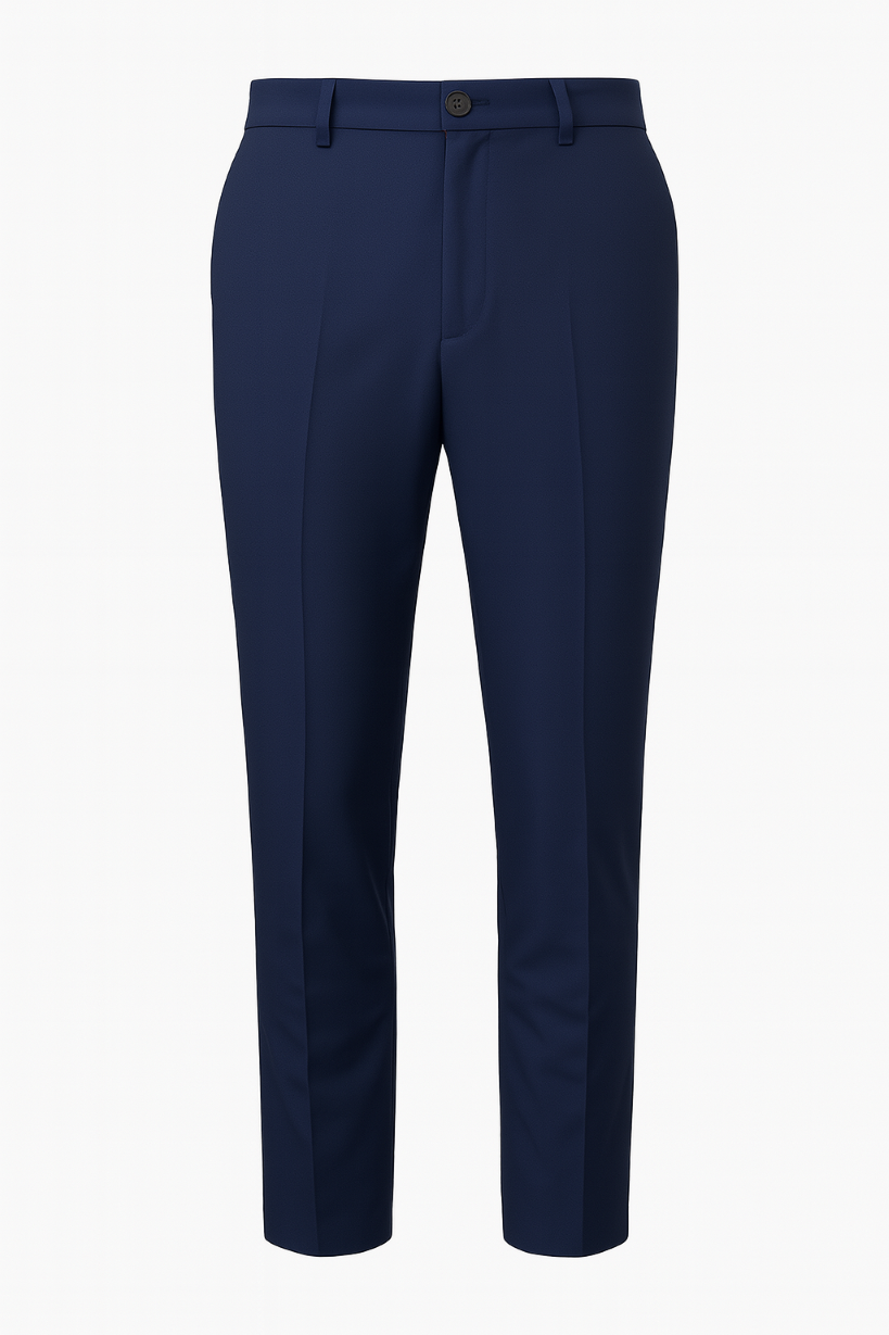 CALÇA SOCIAL MASCULINA AZUL MARINHO, 2 BOLSOS EMBUTIDOS, 1 BORDADO L/D, GESTOR, TAUA JP