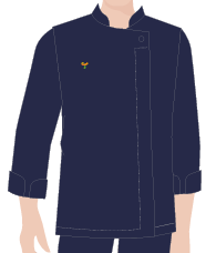 DOLMA MASCULINA GOLA PADRE, ABOTOAMENTO EMBUTIDO AZUL MARINHO, CHEFE DE COZINHA, TAUA JP